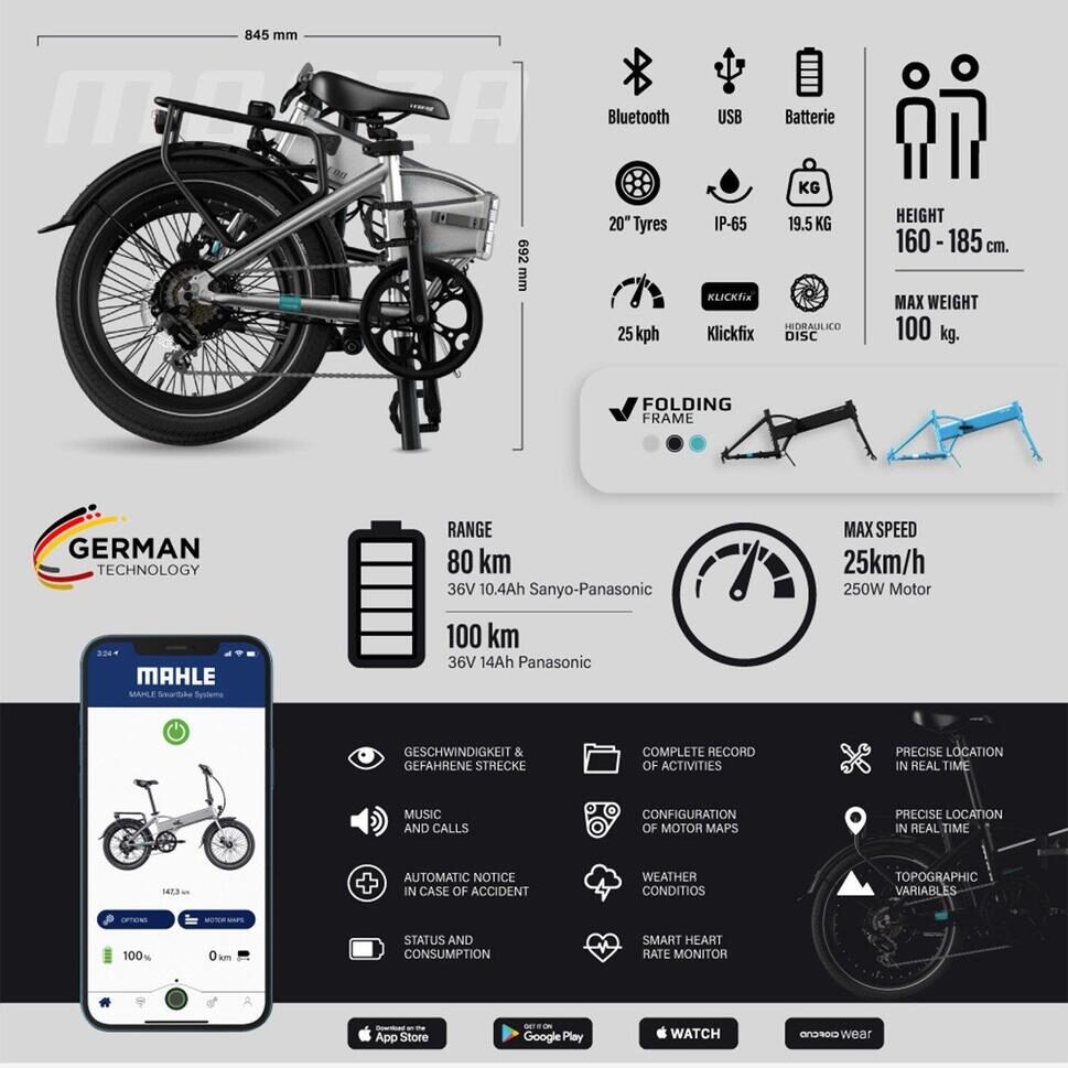 System MAHLE Smartbike® redukuje zużycie energii nawet o 20%. Joystick IWOC z diodami LED umożliwia intuicyjną obsługę, a aplikacja MySmartbike (iOS/Android) zapewnia dostęp do danych w czasie rzeczywistym – prędkości, dystansu, spalonych kalorii i wiele więcej.
